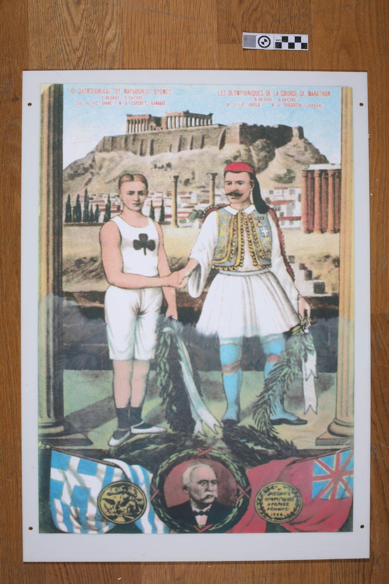 Η αφίσα των Μεσοολυμπιακών Αγώνων της Αθήνας του 1906 απεικονίζει το νικητή του Μαραθώνιου δρόμου των πρώτων σύγχρονων Ολυμπιακών Αγώνων, Σπύρο Λούη και το νικητή της Μεσολυμπιάδας στο ίδιο αγώνισμα, τον Καναδό Γουίλιαμ Σέρινγκ. Οι Μεσοολυμπιακοί Αγώνες γνωστοί και ως Μεσολυμπιάδα του 1906 ήταν μία διεθνής αθλητική διοργάνωση, όμοια των Ολυμπιακών Αγώνων. Διοργανώθηκαν στην Αθήνα, όπως και οι πρώτοι σύγχρονοι Ολυμπιακοί Αγώνες. Ωστόσο, καθώς το 1906 δεν ήταν Ολυμπιακή χρονιά η Αγώνες αυτοί δεν αναγνωρίζονται επίσημα ως Ολυμπιακοί από τη Διεθνή Ολυμπιακή Επιτροπή.