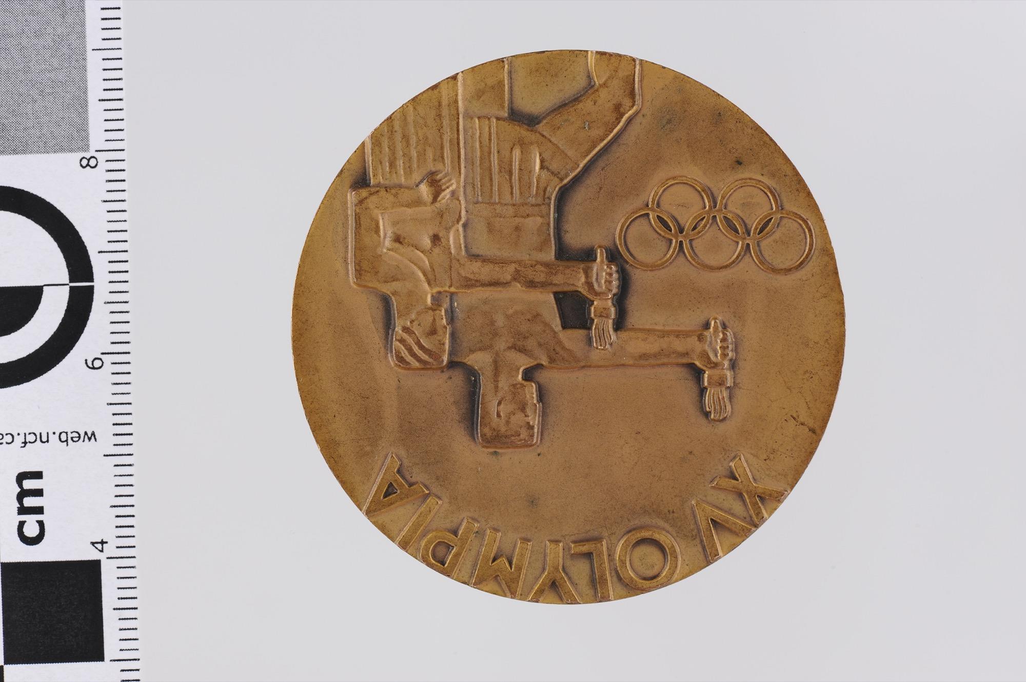 Μετάλλιο συμμετοχής από τους Ολυμπιακούς Αγώνες του Ελσίνκι το 1952. Στη μια όψη φέρει την επιγραφή "XV OLYMPIA" και έχει τους πέντε Ολυμπιακούς Κύκλους και δύο αρχαιοπρεπείς αθλητές, έναν άντρα και μία γυναίκα, με παρατεταμένα χέρια που κρατούν δάδες. Στην άλλη όψη φέρει την επιγραφή "HELSINKI 1952 HELSINGFORS" και έχει δύο προτομές, μια ανάγλυφη και μια εγχάρακτη που πλαισιώνονται απο ένα στάδιο.