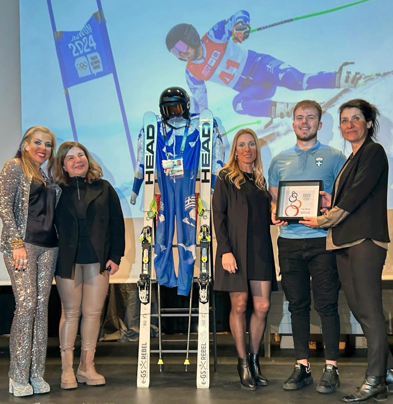 Η εκδήλωση συνεχίστηκε με την συγκινητική προσφορά του Απόστολου Βουγιούκα, του 17χρονου παγκοσμίου φήμης σκιερ, ο οποίος δώρισε την αγωνιστική ενδυμασία και τα προσωπικά του ενθυμήματα από την συμμετοχή του στους Χειμερινούς Ολυμπιακούς Αγώνες Νέων “Gangwon 2024” στην Μόνιμη Έκθεση “Ολυμπιακοί Αγώνες”, παραδίδοντας τα συμβολικά στις Ολυμπιονίκες Κατερίνα Θάνου και Φωτεινή Βαβάτση.