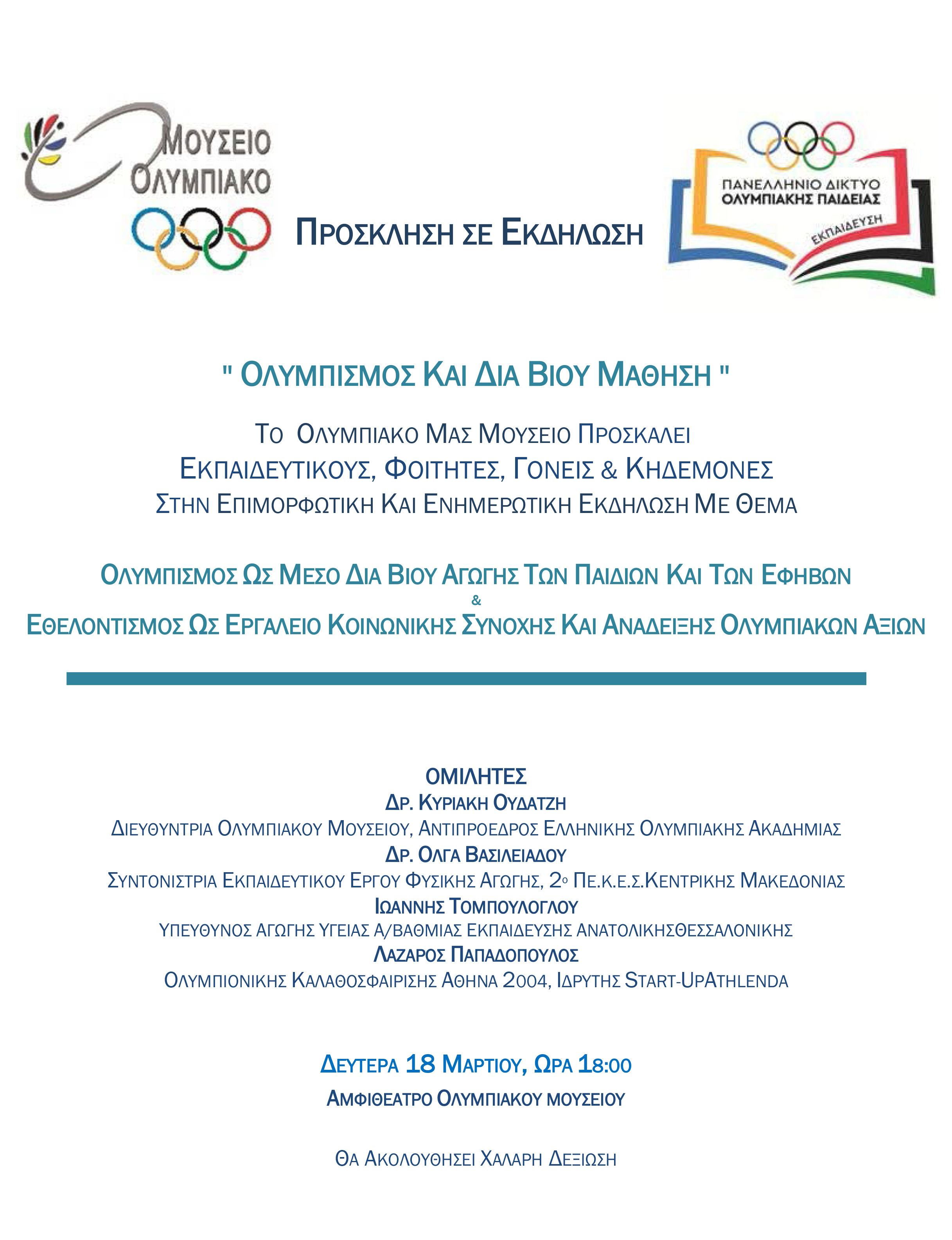 ΠΑΝΕΛΛΗΝΙΟ ΔΙΚΤΥΟ ΓΙΑ ΤΗΝ ΟΛΥΜΠΙΑΚΗ ΠΑΙΔΕΙΑ ΣΤΗΝ ΕΚΠΑΙΔΕΥΣΗ