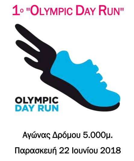 ΣΑΣ ΚΑΛΟΥΝ ΣΤΟ “1Ο OLYMPIC DAY RUN” - ΠΑΡΑΣΚΕΥΗ 22 ΙΟΥΝΙΟΥ 2018, ΩΡΑ 20.00