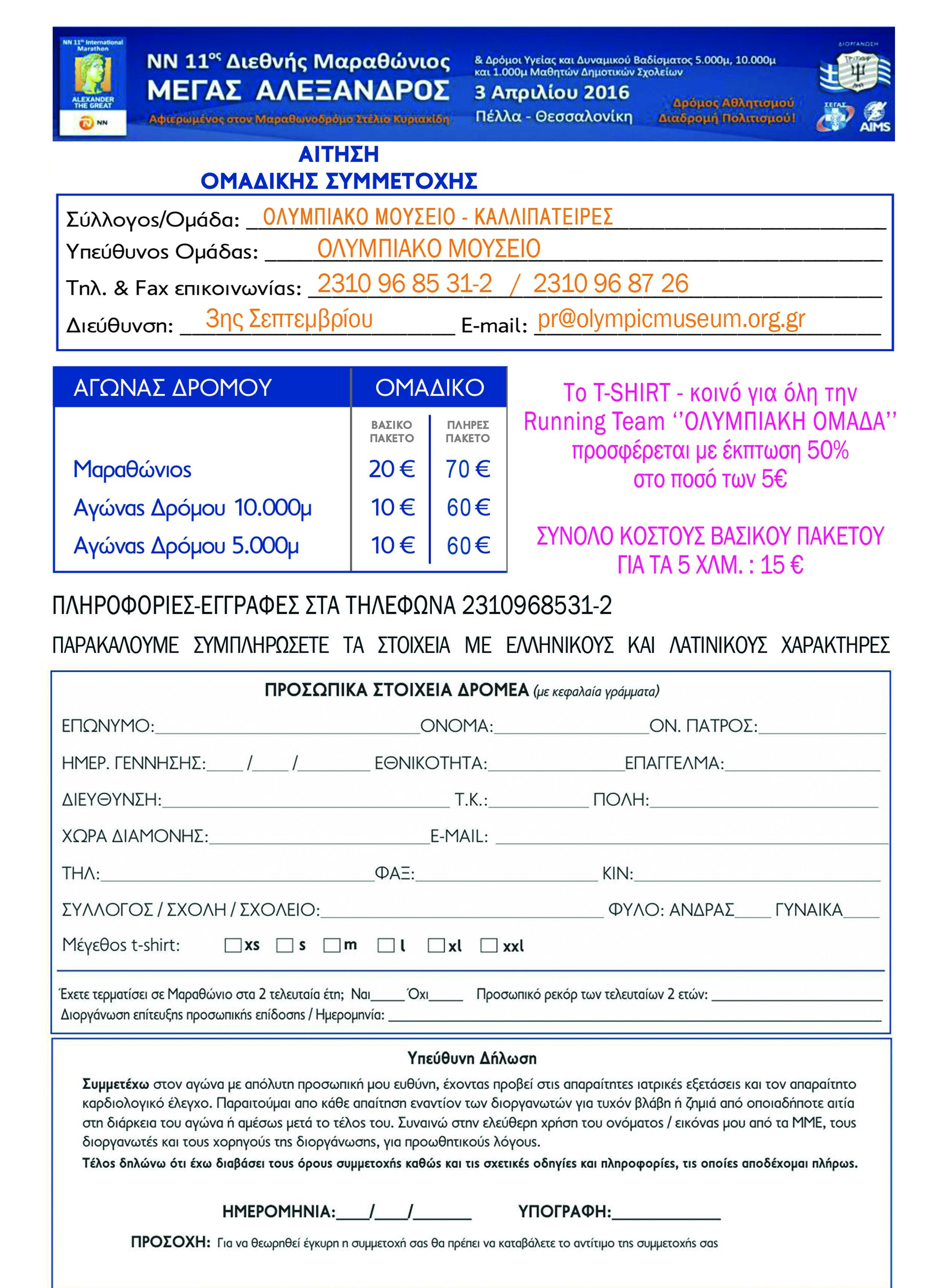 ΔΗΛΩΣΤΕ ΣΥΜΜΕΤΟΧΗ ΚΑΙ ΕΛΑΤΕ ΜΑΖΙ ΜΑΣ, ΜΕ ΤΗΝ ΟΛΥΜΠΙΑΚΗ ΟΜΑΔΑ ΝΑ ΤΡΕΞΟΥΜΕ, ΝΑ ΠΕΡΠΑΤΗΣΟΥΜΕ ΚΑΙ ΝΑ ΞΕΣΗΚΩΣΟΥΜΕ ΤΗΝ ΠΟΛΗ ΣΤΟ ΠΟΔΙ!!!